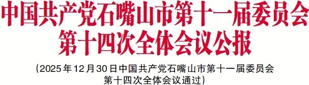 中国共产党石嘴山市第十一届委员会第十四次全体会议,于2025年12月30日举行。